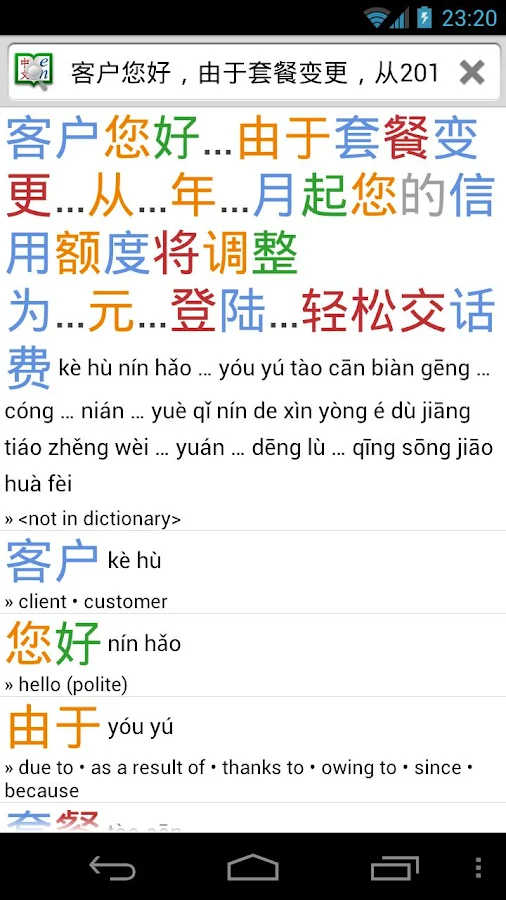 The best fun part on this Apps is the text to speech, apparently the pronunciation is rather accurate and literally we do not have to look at the phone. Chinese character input is possible but yet to check on the text to speech function.